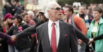 100 Occupiers flash-mobbed San Francisco and this is what happened. If you want to feel good for a few minutes, watch this. This is what is possible when today's technology and energy is used for good.