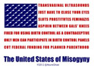 Transvaginal ultrasounds, just have to close your eyes, sluts, prostitutes, feminazis, aspirin between gals' knees, fired for using b irth control as a contraceptive, only men can participate in birth control panels, cut federal funding for Planned Parenthood.
